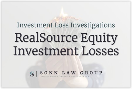 Sonn Law Group is representing investors who have suffered losses investing in RealSource Equity Services LLC. If you or a family member has suffered losses investing, we want to discuss your case. Please contact us today for a free review of your case.